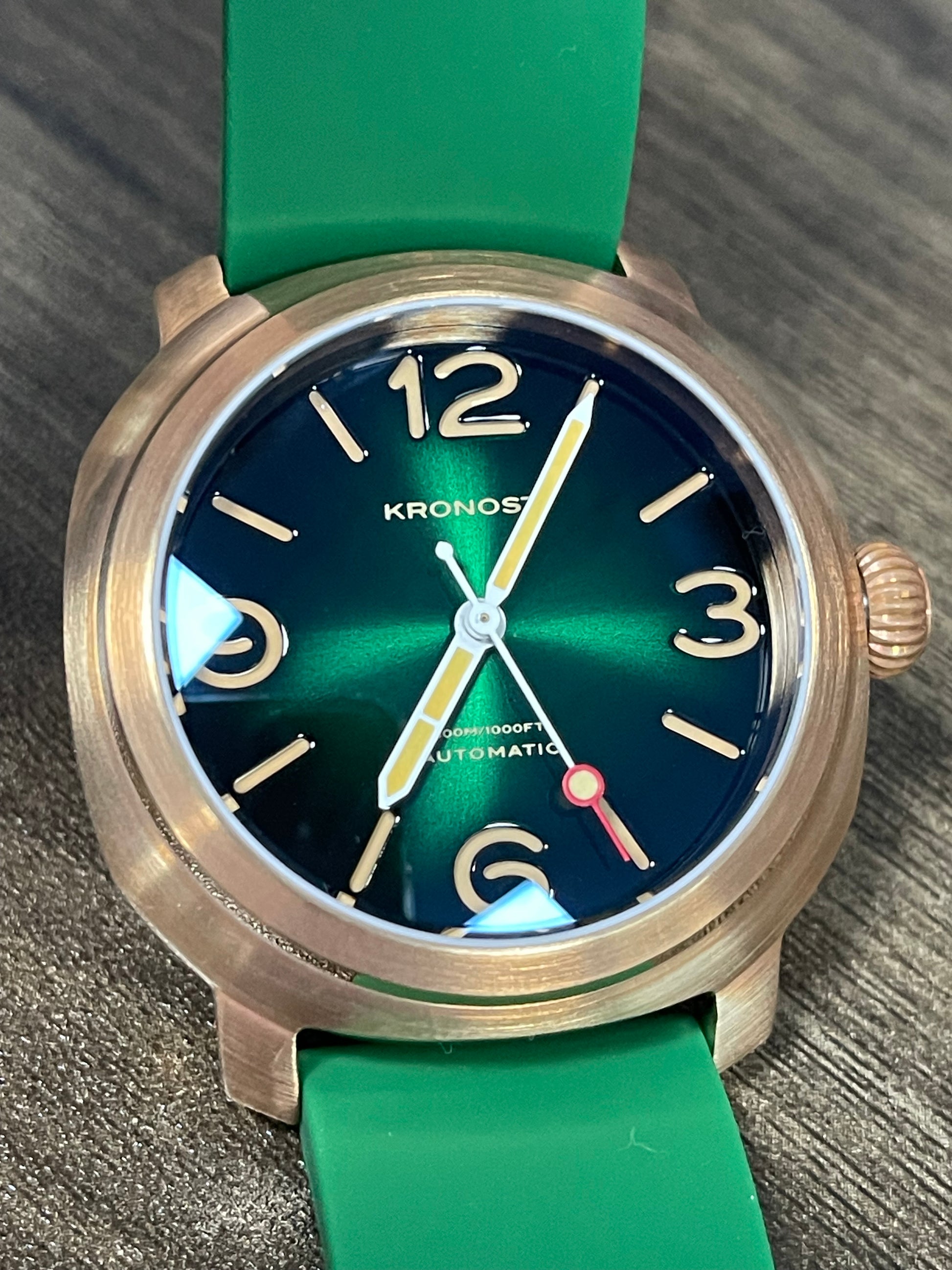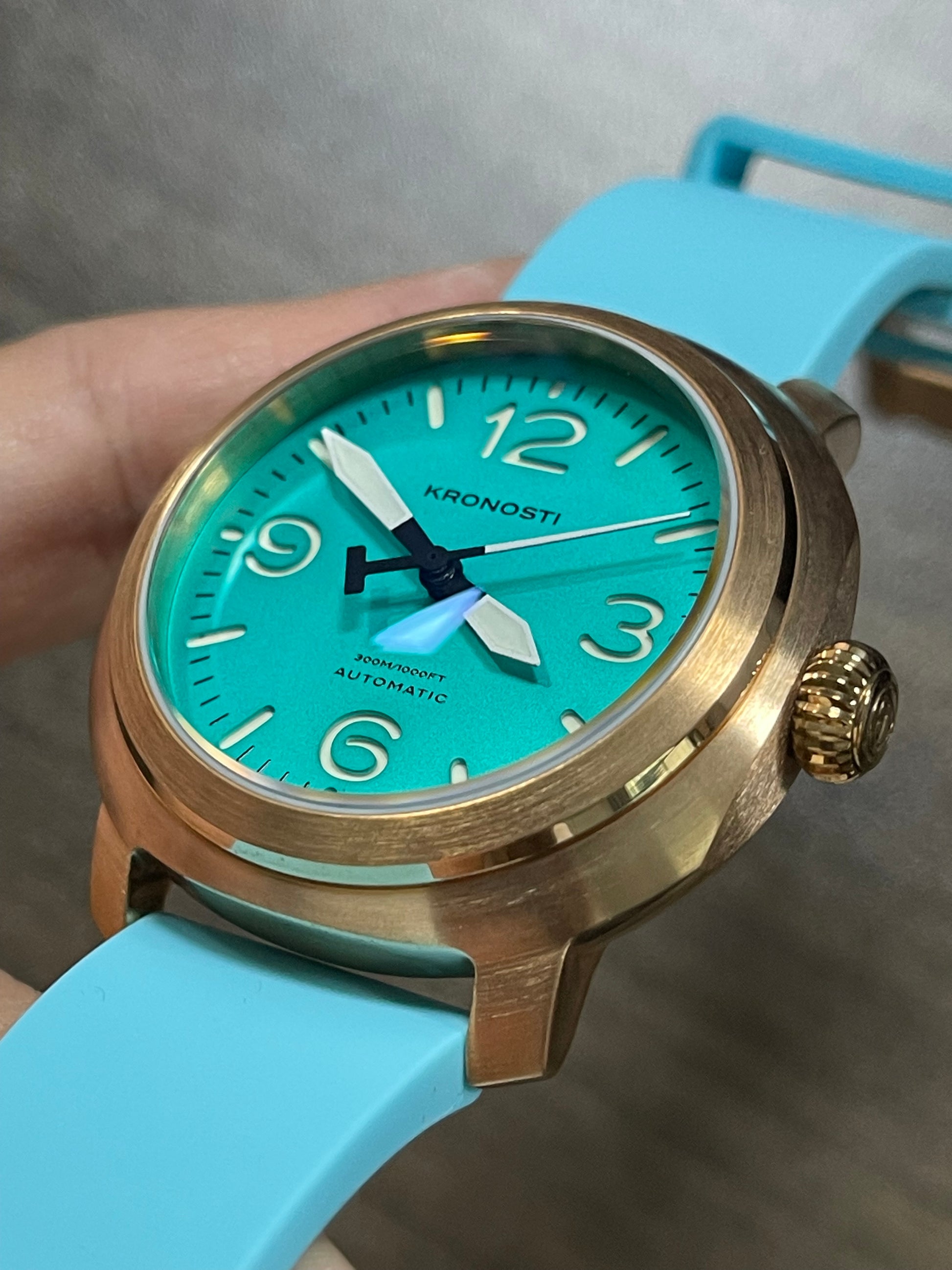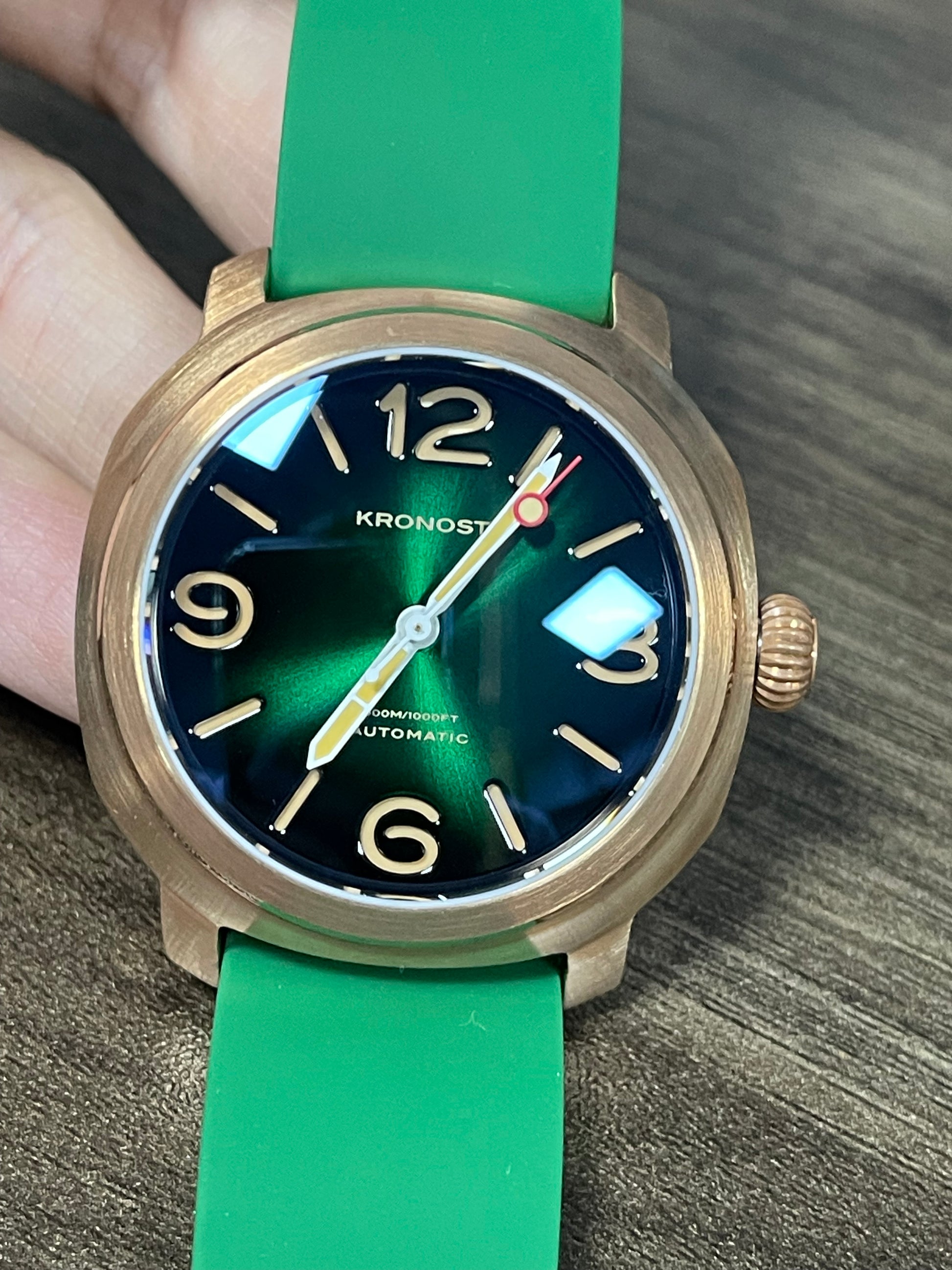 Powered by the Seiko NH38 automatic movement in a 300m-rated bronze case with Swiss BGW9 Super-LumiNova. A watch that grows with you.