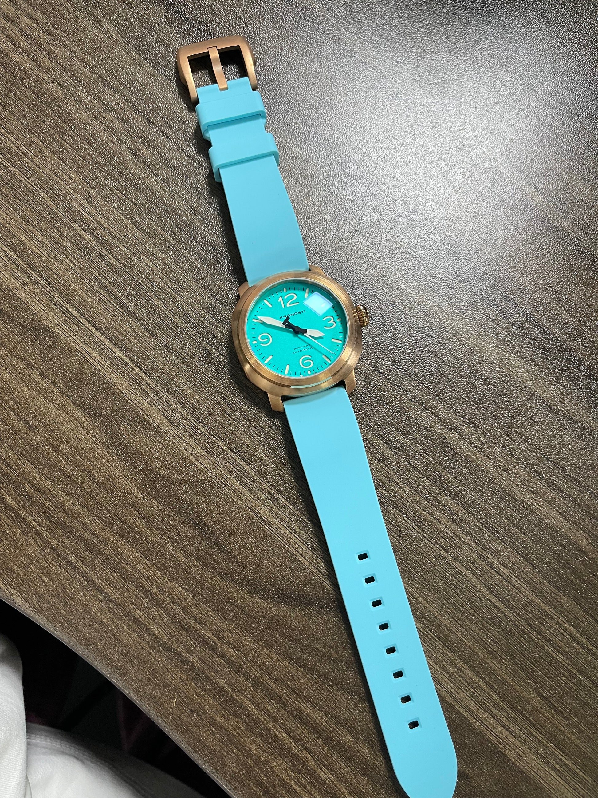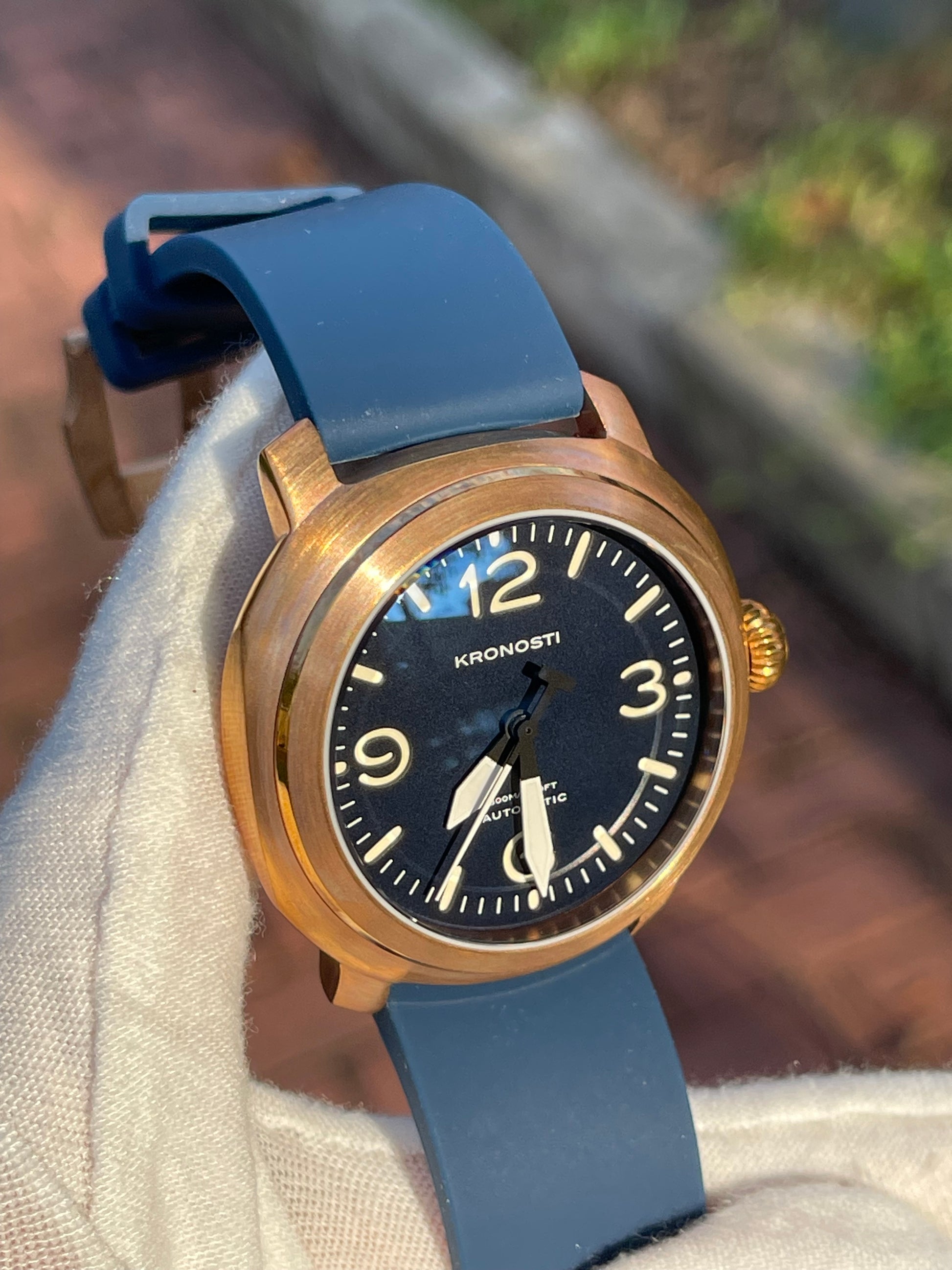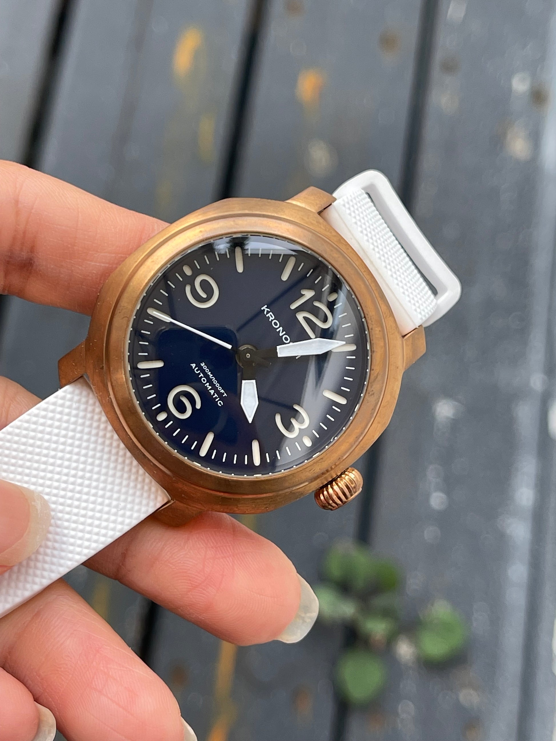 Powered by the Seiko NH38 automatic movement in a 300m-rated bronze case with Swiss BGW9 Super-LumiNova. A watch that grows with you.
