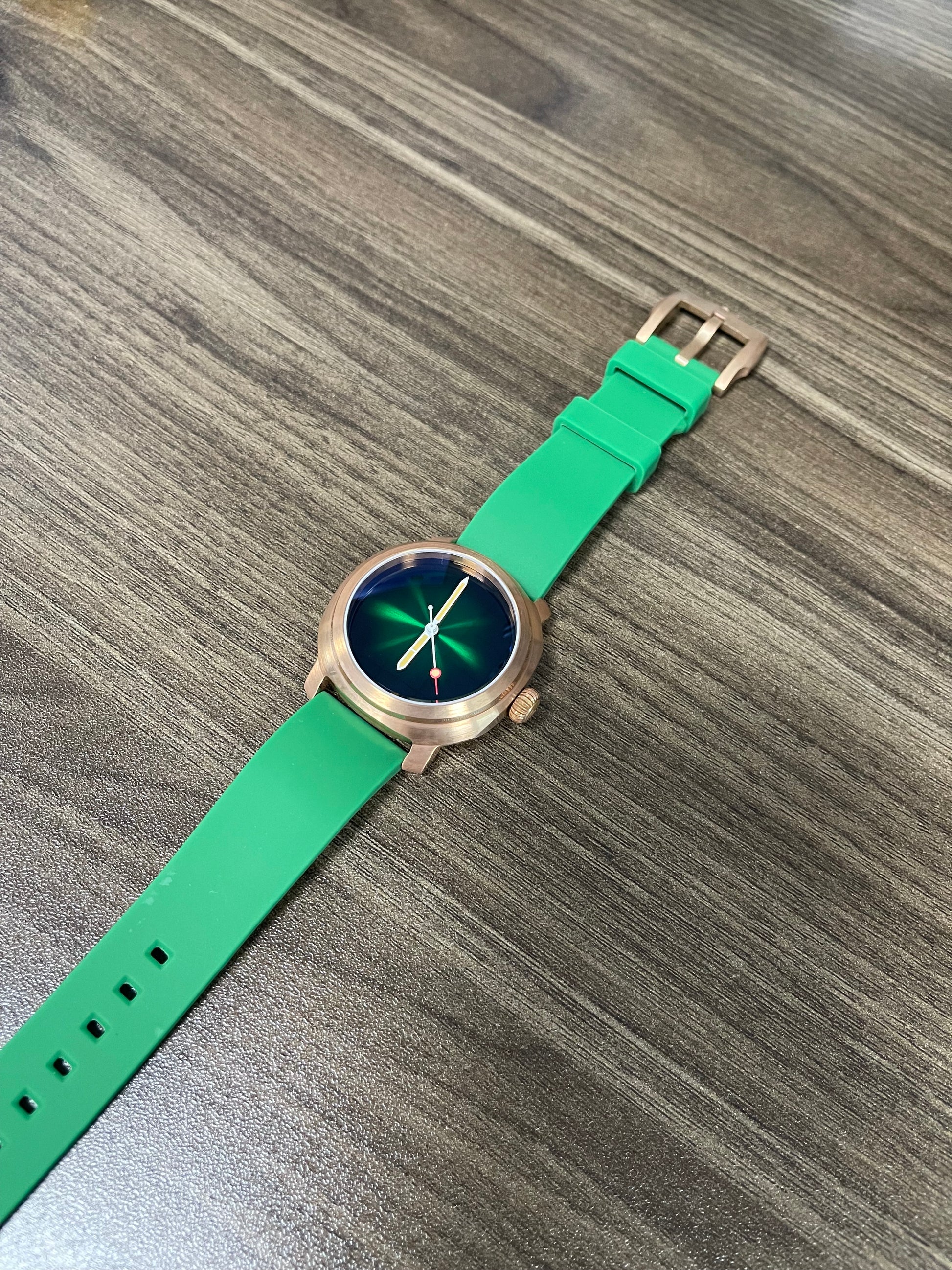 16 dial color variations — each one transformed by the bronze case into something entirely unique.